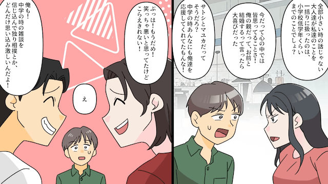 今回は『俺「結婚式いつにする?」婚約者「あなたとは結婚しないけど?」⇒真実に気づいて顔面蒼白した話』を紹介します。 主人公が結婚すると知り、相手は自分だと勘違いした幼なじみ。 しかし主人公が「あんたじゃないよ」と告げると、幼なじみは「俺たちの仲を特別と思ってる人は他にもいる」と言い出して…。