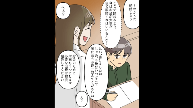 幼なじみが絶望していると、その場に現れた女性が「あなたが払うべきお金、私が全部出してあげます」と言いました。 そして女性からお金を出す条件として結婚を求められた幼なじみは「今はお金が大事だ。あとで離婚すればいいもんな!」と考え、婚姻届にサインをしたのです。