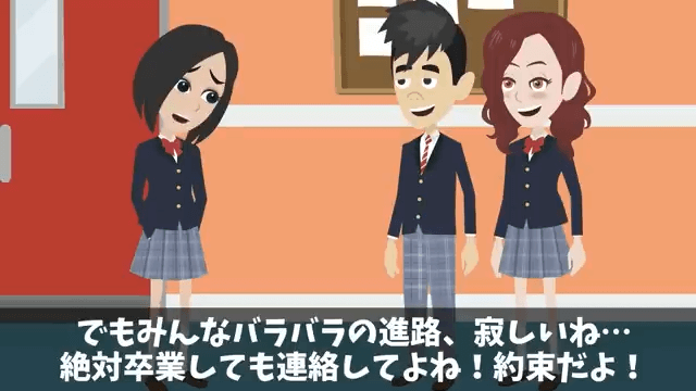 主人公は背中を押してくれた友人たちに「2人には感謝してもしきれない!」と伝えます。 そして主人公は「絶対卒業しても連絡してよね!約束だよ!」と言いました。