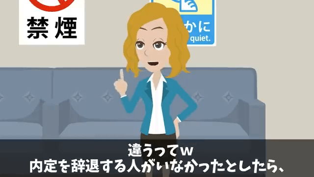 主人公は、内定を辞退するつもりはないと大卒の女性に伝えました。 すると大卒の女性は、辞退する人がいなければ内定を取り消される人が出るかもしれないと言い始めて…。
