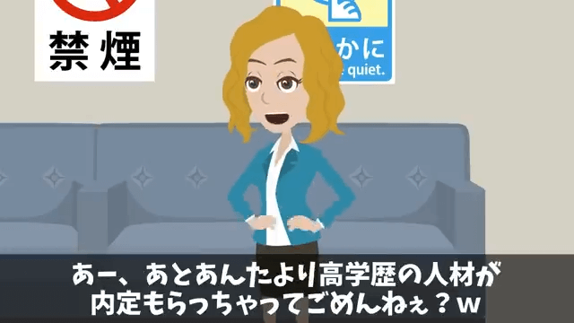 大卒の女性は「つらいかもしれないけど受け入れるしかないわよ」と主人公に伝えます。 そして人事担当者は「とにかく本当にすまないね。期待させてしまって…」と言いました。