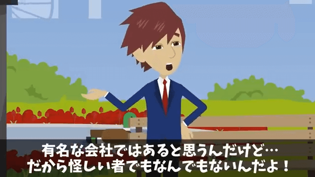 主人公が泣いていることに気づいた男性社員は「もしつらいことがあったなら話を聞くよ?」と言ってくれました。 そして男性社員は、近くの会社で働いていると言い、怪しい者ではないとつけ加えて…。