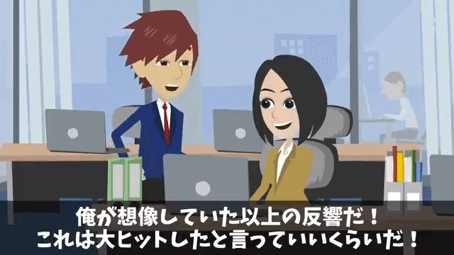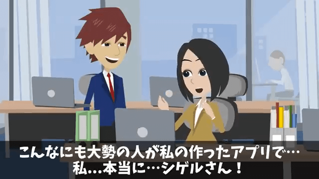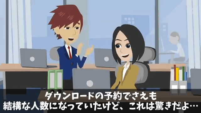 今回は『入社式当日…人事「内定取り消しで!」私「はーい」⇒速攻でライバル会社に就職した結果』を紹介します。 男性社員の会社に入社した主人公は、自分のアプリを完成させることができました。 そしてついにアプリのリリース日を迎え、男性社員が「俺たちも一緒に頑張ったんだからきっと大丈夫」と言ってくれて…。