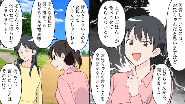 今回は『妹夫婦を優先する夫「言うこと聞かないなら家に金は入れない!」⇒私「離婚届書いてね」夫「え?」』を紹介します。 甥の運動会で抱き合う夫と義妹を見て、その異常な行動に引いてしまう主人公。 さらに義妹から「しわが増えましたね」とイヤミを言われ、主人公は「苦労しているからかもね」と答えたのでした。