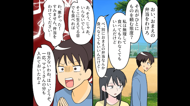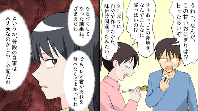 イヤミを言ってくる義妹と義妹を庇う夫に、限界を感じていた主人公。 夫は主人公が作った弁当もバカにしてきましたが、義妹の弁当がおいしくないとわかった途端、手のひらを返して「弁当をわけろ」と言ってきました。