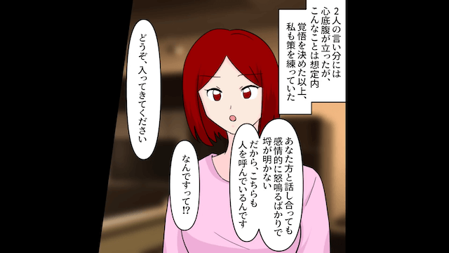 夫と義母の行動が想定内だった主人公は、味方を呼んでいて…。