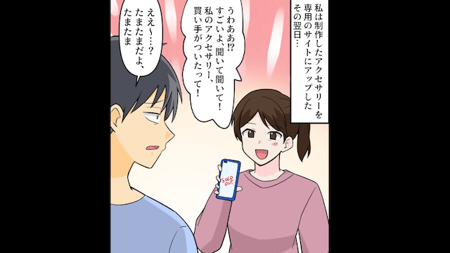 今回は『共働きなのに…夫「お前の金は俺の金!」⇒私「じゃあさよなら」離婚宣言した結果』を紹介します。 ママ友から「ビジネスチャンスよ!」と言われ、趣味で作っていたアクセサリーを売ることにした主人公。 夫は「売れるわけないだろ」とネガティブなことを言ってきましたが、息子は応援してくれて…。
