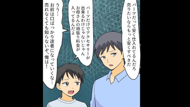 今回は『共働きなのに…夫「お前の金は俺の金!」⇒私「じゃあさよなら」離婚宣言した結果』を紹介します。 ママ友から「ビジネスチャンスよ!」と言われ、趣味で作っていたアクセサリーを売ることにした主人公。 夫は「売れるわけないだろ」とネガティブなことを言ってきましたが、息子は応援してくれて…。