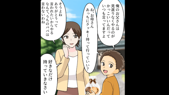 今回は『共働きなのに…夫「お前の金は俺の金!」⇒私「じゃあさよなら」離婚宣言した結果』を紹介します。 懇親会の最中、息子が夫に「今日もケーキあるけど、この前みたいに偉そうに取ってない?」と言うと、それを聞いていたママ友が息子に「お父さんはそういう人なの?」と尋ねました。 すると息子は「ちょっと子どもっぽくて」と答えて…。