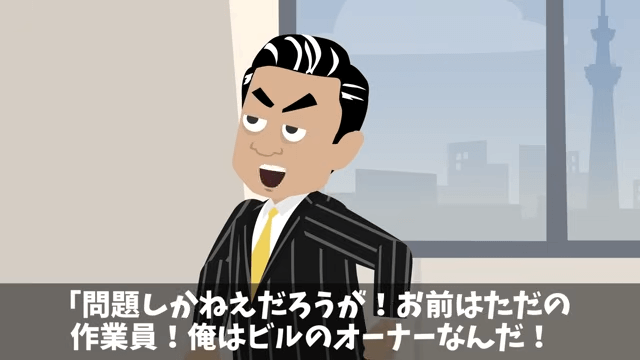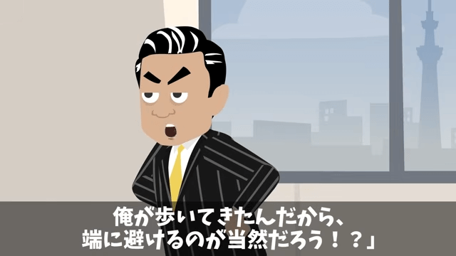 オーナーは自分が歩いてきたのだから主人公は端に避けるべきだと言います。 そこで主人公は、オーナーが後ろから来たため見えなかったことを伝えました。