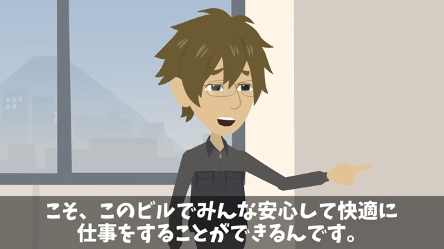 オーナーは作業員のような地位の低い人間は、自分のビルに立ち入らないようにすべきだと言います。 それを聞いた主人公は「…あの、それって、作業員の方たちに失礼ですよ?」と言い返して…。