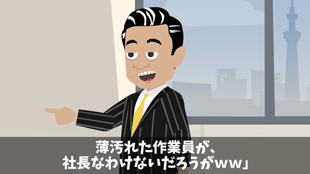今回は『「貧乏作業員が入ってくるな!」俺「ここの社長ですよ?」移転しろというので全50フロア撤退した結果』を紹介します。 主人公は人を見た目で判断しないほうがいいとオーナーに伝え、これは社長としての忠告だとつけ加えました。 するとオーナーは「社長?…誰が?」と首をかしげて…。