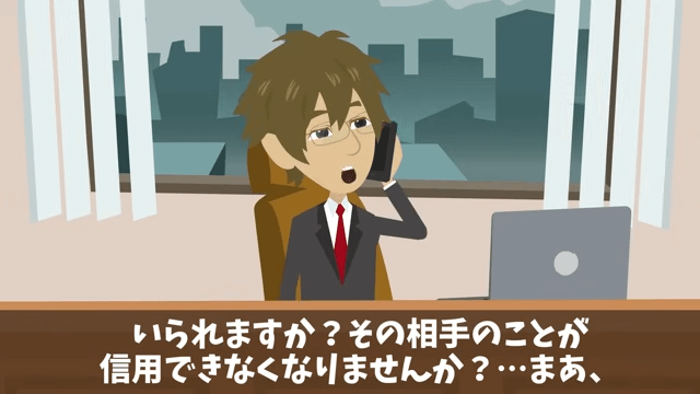主人公は先代が長い付き合いで築いてきた信頼をオーナーがすべて壊してしまったのだと説明しました。 そして主人公は「自分の言動、よくよく振り返ってみてください」とオーナーに伝え、電話を切ることにしたのです。