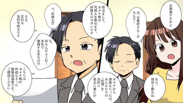 その後、姉と弁護士を呼んだ主人公は、正式な法的手続きを進めて…。