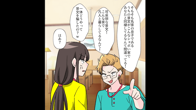 今回は『名家気取りの彼母「育ちが悪い女!」と言うので私の実家で顔合わせした結果』を紹介します。 彼母は「うちの息子を惑わして私の敵にするなんて!」と主人公に怒りを募らせていました。 そして悪巧みをした彼母は、主人公と彼氏を破局させようとして…。