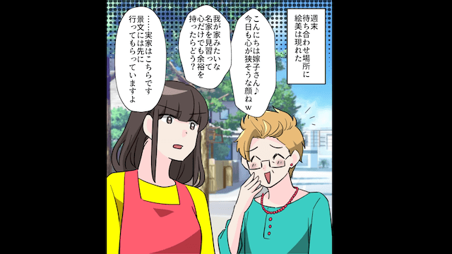 今回は『名家気取りの彼母「育ちが悪い女!」と言うので私の実家で顔合わせした結果』を紹介します。 彼母は主人公に「結婚前にあなたの実家を知る必要性があるわ」と言い、両家の顔合わせを求めました。 そして彼母が週末に実家に来ることになったため、主人公と彼氏は「迷惑が最小限になるよう対策を打ちましょ」と話し合って…。