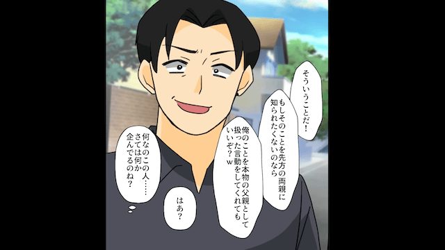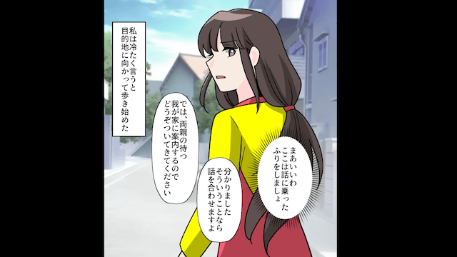 顔合わせ当日、彼母は自分の浮気相手をハウスキーパーとして主人公たちに紹介し、顔合わせに連れてきました。 主人公と彼氏はそんな彼母の行動に驚愕しますが、ひとまず話に乗ったフリをすることにします。