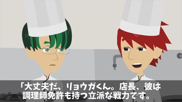 今回は『指摘したパートの俺を蹴飛ばした店長「お前は床でも磨いとけ!」俺の正体を明かした結果』を紹介します。 板前は主人公に調理補助として来てもらっていることを店長に説明しました。 すると店長は「お前は板前だろ?自分の仕事すら1人でできないで、パートに手伝ってもらうなんて」と言い…。