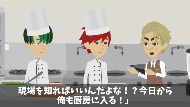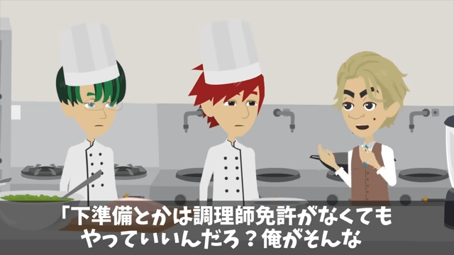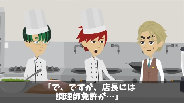 板前が「厨房のことは私に任せてください」と言うと、店長は「現場を知らないから口出しさせないと言うんなら、今日から俺も厨房に入る!」と言い出しました。 板前はそんな店長に、調理師免許を持っていないことを指摘したのですが…。