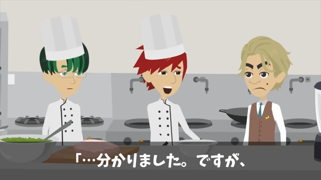 今回は『指摘したパートの俺を蹴飛ばした店長「お前は床でも磨いとけ!」俺の正体を明かした結果』を紹介します。 店長が現場を知るために自分も厨房に入ると言い出したため、板前は店長が調理師免許を持っていないことを指摘しました。 すると店長は、下準備なら調理師免許がなくてもいいだろうと言い返して…。