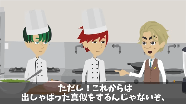 今回は『指摘したパートの俺を蹴飛ばした店長「お前は床でも磨いとけ!」俺の正体を明かした結果』を紹介します。 板前が主人公は厨房から外せないと言うと、店長は「俺がいれば十分だろうが!」と怒りました。 そこで板前が、店長には店長の業務があるはずだと言うと、店長は「ちっ…仕方ねえな」と言い…。