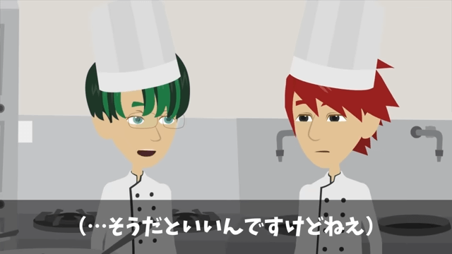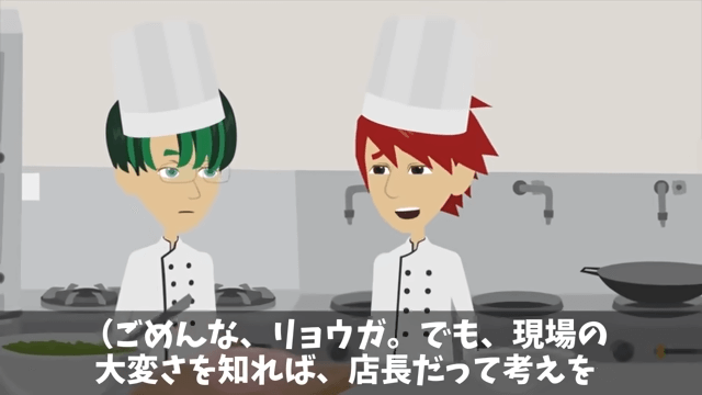 今回は『指摘したパートの俺を蹴飛ばした店長「お前は床でも磨いとけ!」俺の正体を明かした結果』を紹介します。 板前が主人公は厨房から外せないと言うと、店長は「俺がいれば十分だろうが!」と怒りました。 そこで板前が、店長には店長の業務があるはずだと言うと、店長は「ちっ…仕方ねえな」と言い…。