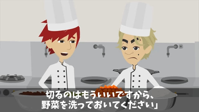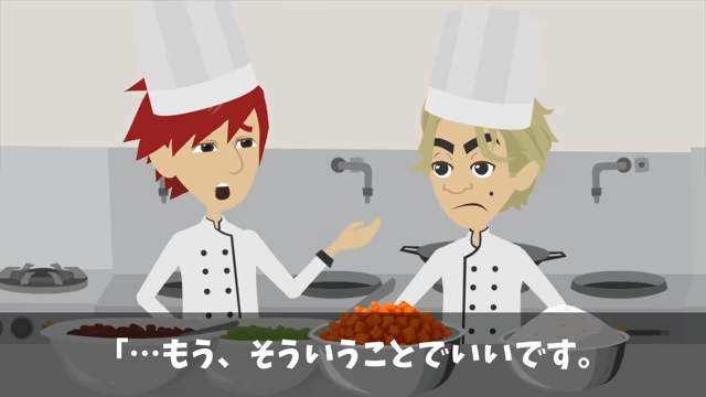 主人公はベテランの板前に本場を説く店長に呆れてしまいます。 そして板前も「…もう、そういうことでいいです」と言い、野菜を洗うよう店長に指示しました。