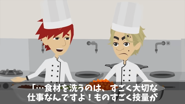 板前から野菜を洗うよう指示されたものの、寒いからという理由で拒否した店長。 板前はそんな店長に「食材を洗うのは、すごく大切な仕事なんですよ!ものすごく技量が問われる仕事なんです!」と伝えて…。