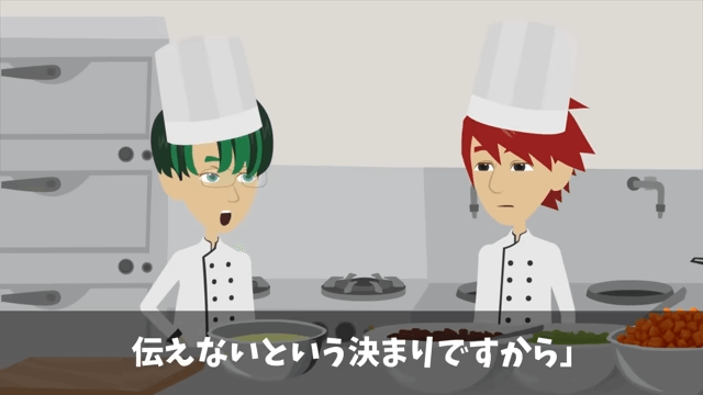 店長にあることを黙っている主人公は、板前から店長に話すよう勧められました。 しかし主人公は、公平性を期すために板前以外には伝えないと言い…。