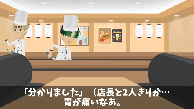今回は『指摘したパートの俺を蹴飛ばした店長「お前は床でも磨いとけ!」俺の正体を明かした結果』を紹介します。 店長が簡単な手伝いすらできないため、板前はかなり苦労している様子でした。 しかし店長は板前の言うことだけは聞くため、大きな問題は起こらずに済んでいて…。
