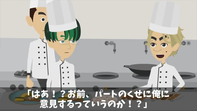 今回は『指摘したパートの俺を蹴飛ばした店長「お前は床でも磨いとけ!」俺の正体を明かした結果』を紹介します。 板前が不在の中、店長から何をしているのか聞かれた主人公は、盛りつけをしようとしていることを話しました。 すると店長は、主人公が盛りつけると客から苦情が来るから自分がやると言い出して…。