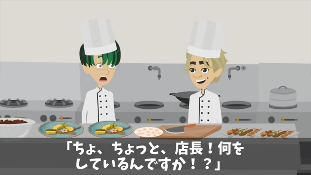 今回は『指摘したパートの俺を蹴飛ばした店長「お前は床でも磨いとけ!」俺の正体を明かした結果』を紹介します。 店長はこれまで板前の仕事を見てきたから自分にも盛りつけができると言い張りました。 しかし主人公は「店長は普段事務所にこもっていて、現場なんてほとんど見ていないはずだ…」と思っていて…。