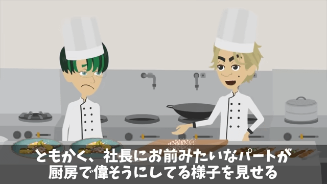 今回は『指摘したパートの俺を蹴飛ばした店長「お前は床でも磨いとけ!」俺の正体を明かした結果』を紹介します。 明日社長が来ることを知っていた主人公に、店長は「なんだ、板前から聞いたのか?」と尋ねました。 そして店長は、板前について「あいつは腕はいいが、上に立つものとしての威厳が足りんな」と言い…。