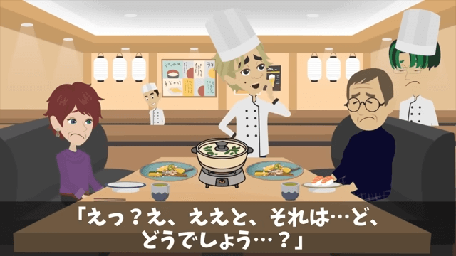 今回は『指摘したパートの俺を蹴飛ばした店長「お前は床でも磨いとけ!」俺の正体を明かした結果』を紹介します。 店長が盛りつけをアレンジしたことを客に説明すると、客はこの店の盛りつけに斬新さは求めていないと言いました。 さらに客は「そもそもこの花だったものは食用なのかね!?」と店長に尋ねて…。