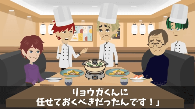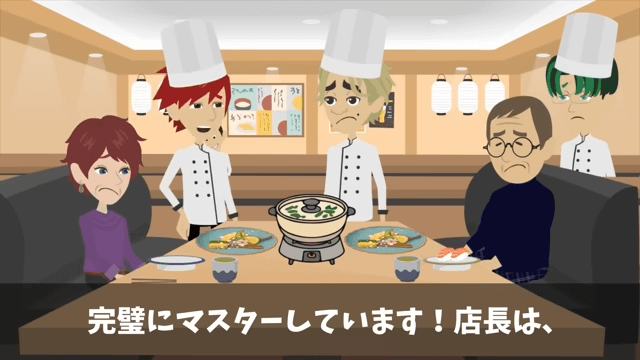 今回は『指摘したパートの俺を蹴飛ばした店長「お前は床でも磨いとけ!」俺の正体を明かした結果』を紹介します。 板前に注意された店長は、主人公が盛りつけるよりも自分が盛りつけたほうがいいと主張しました。 板前はそんな店長に、主人公には盛りつけのやり方を教えてあると説明して…。