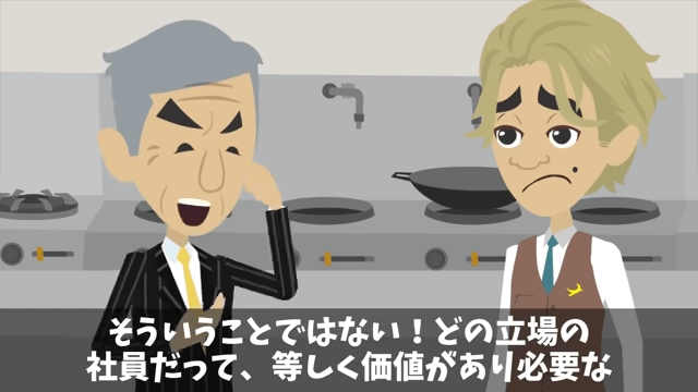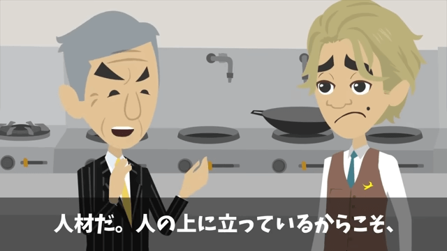 今回は『指摘したパートの俺を蹴飛ばした店長「お前は床でも磨いとけ!」俺の正体を明かした結果』を紹介します。 社長が店長に「私は大切な社員を、庶民だとか、下だとか思ったことはない!」と言うと、店長は「で、でも、社長はトップなんですよ?一番偉いんですよ!?」と言いました。 社長はそんな店長に「立場上は、そうだ。人の上に立っていることは間違いない」と話し始めて…。