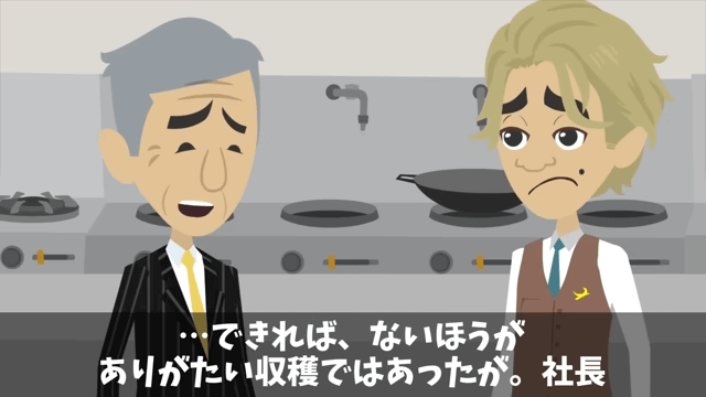 今回は『指摘したパートの俺を蹴飛ばした店長「お前は床でも磨いとけ!」俺の正体を明かした結果』を紹介します。 社長は、店長がパートに対してまったく敬意を払っていないことを知り、呆れていました。 そして社長は「今回は、息子の様子の確認に来たのだが、思わぬ収穫があったな」と言い…。