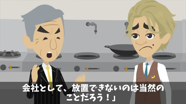 今回は『指摘したパートの俺を蹴飛ばした店長「お前は床でも磨いとけ!」俺の正体を明かした結果』を紹介します。 社長から処分について告げられた店長は、相手が主人公だったからそんなに怒っているのではないかと言い出しました。 そして店長が「それも、贔屓のひとつじゃないんですか?」と社長に言うと…。