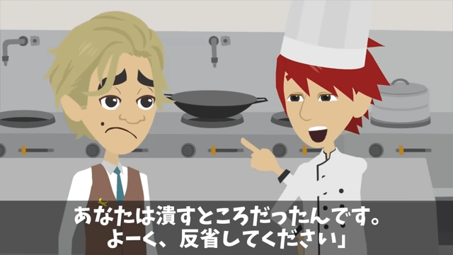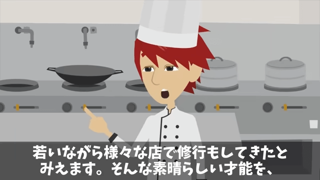 社長は店長がいまだに反省していないことを知って呆れてしまいます。 そんな中、板前は主人公が優秀な料理人であることを店長に説明して…。
