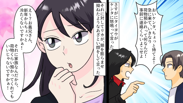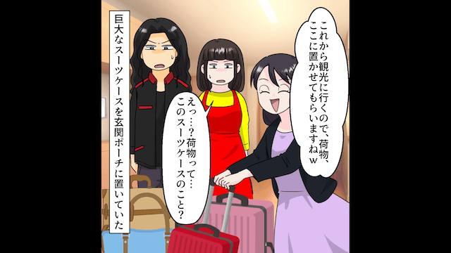 今回は『義弟夫婦「旅行行くから荷物預かっといて!」私「はーい」⇒そのまま実家に帰省した結果』を紹介します。 新年を迎え、夫と2人でおせちを食べながら穏やかに過ごしていた主人公。 しかし突然義弟夫婦が家にやってきたため、主人公夫婦は嫌な気分になり…。