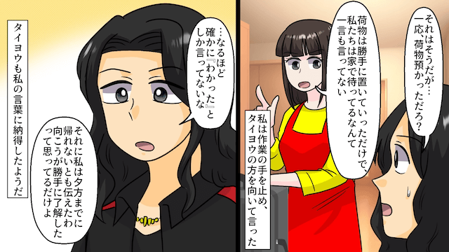 義弟夫婦に強引に荷物番を頼まれ「わかった」とだけ答えた主人公。 すると義弟夫婦は夕飯の用意まで任せてきて、上機嫌で観光に行ってしまいました。