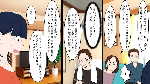 今回は『機嫌が悪いと私を【無視】する夫の末路』を紹介します。 夫と言い争いをした翌日、突然義両親が家にやってきました。 そして義母が「あなた妻としての自覚が足りないんじゃありません?」と主人公を責めてきて…。