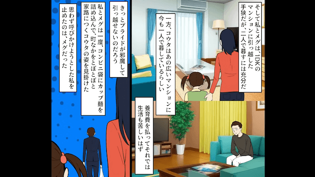 その後、主人公が偶然見かけた夫は、カップ麺を片手にとぼとぼと歩いていたのでした。