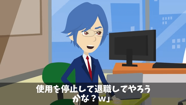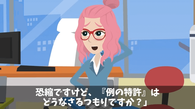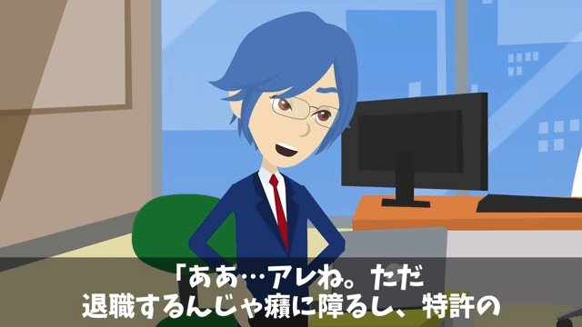 後輩は「例の特許はどうなさるつもりですか?」と主人公に尋ねました。 そこで主人公は「特許の使用を停止して退職してやろうかな?」と答えて…。