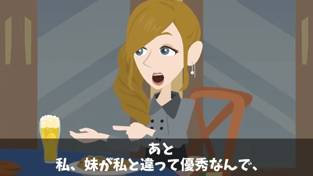 社長との食事中、少し酔いが回った婚約者は困った友人がいることを話しました。 さらに婚約者は、自分の妹がとても優秀で、そんな妹に嫉妬しているのだと明かしたのです。