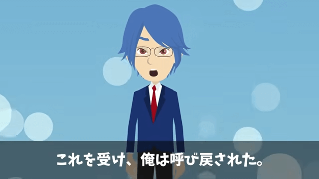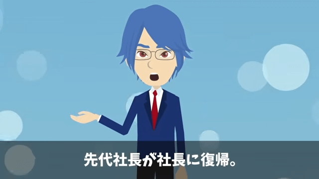 社長の問題行動が先代社長の耳に入り、社長と同僚は失業しました。 そして社長の事後処理のために、経験豊富な先代社長が復帰することになり、主人公も会社に呼び戻されたのです。