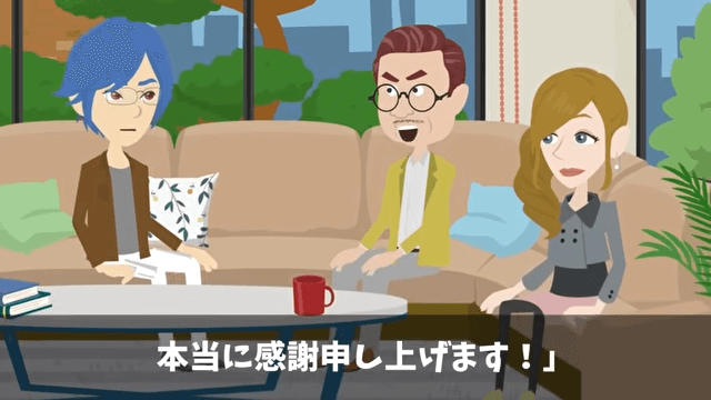 今回は『俺の退職金が【39円】だったので特許の使用を停止した結果』を紹介します。 社長は慌てて主人公に謝ろうとしましたが、恐ろしい人たちによってどこかに運ばれていきました。 その後、婚約者が主人公に「助けてくださり、ありがとうございました!」とお礼を言って…。