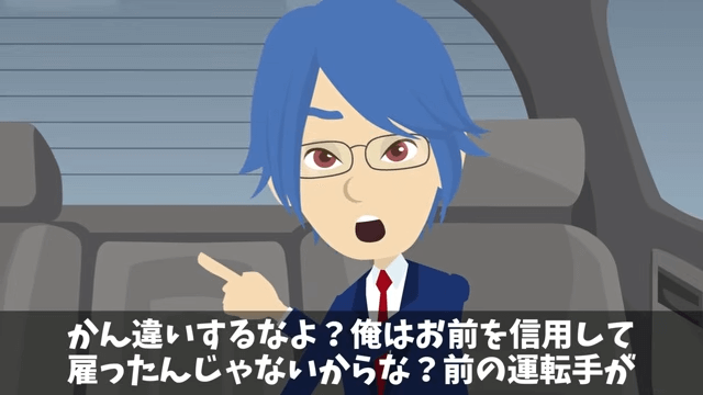 今回は『俺の退職金が【39円】だったので特許の使用を停止した結果』を紹介します。 主人公が仕事を終えて社長専用車に乗り込むと、運転手になった社長が「私みたいな人間を運転手に採用してくださって、誠に痛み入ります!」と言ってきました。 主人公はそんな社長に、取引先の社長に感謝するよう伝えて…。