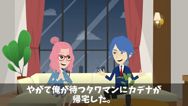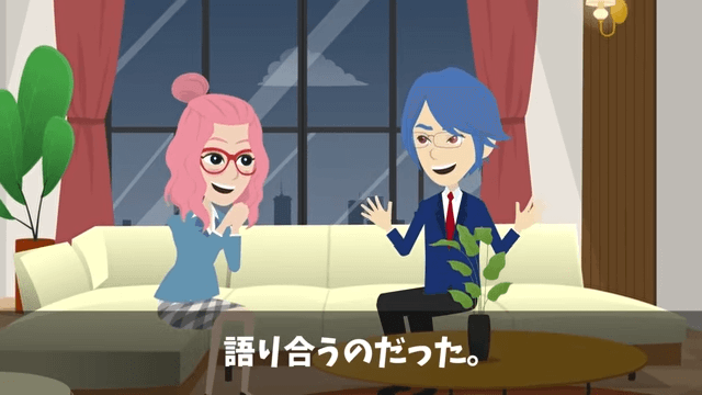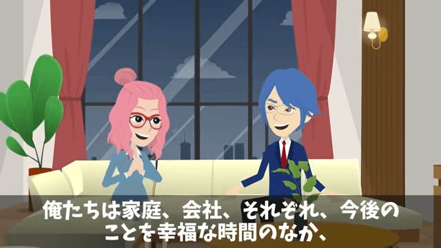 清掃員として働くことになった同僚は、社長に接近したことを後悔しているようです。 一方、主人公は帰宅した妻と幸福な時間の中で、今後のことについて語り合うのでした。