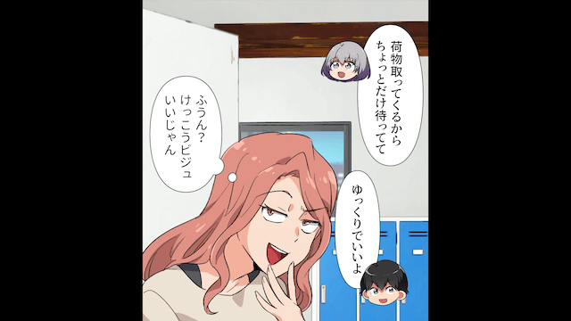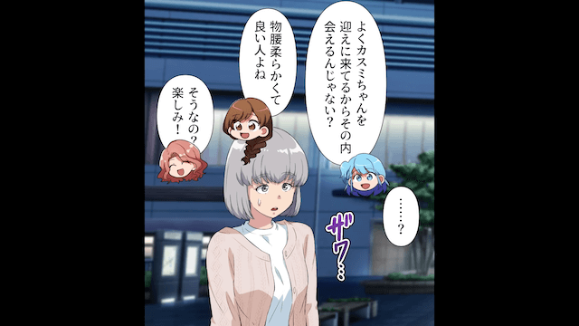 女性が彼氏を見てみたいと言ってきたため、主人公は胸騒ぎがしました。 それから数日後、バイト先に迎えに来た彼氏を見た女性はニヤリと笑い「結構ビジュいいじゃん」と思って…。
